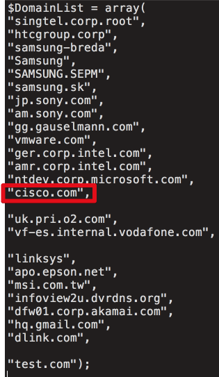 Хакеры, внедрившие бэкдор в популярную утилиту для очистки и оптимизации жесткого диска CCleaner, также пытались атаковать крупнейшие технологические компании, включая Cisco, Singtel, HTC, Samsung, Sony, Gauselmann, Intel, VMWare, O2, Vodafone, Linksys, Epson, MSI, Akamai, DLink, Oracle (Dyn), Microsoft и Google (Gmail). Как полагают эксперты, к атакам причастна китайская кибергруппировка Axiom, также известная как APT17, DeputyDog, Tailgater Team, Hidden Lynx, Voho, Group 72 или AuroraPanda. Первым свидетельства связи между вредоносным кодом, встроенным в CCleaner, и группировкой Axiom заметил специалист «Лаборатории Касперского» Костин Раю (Costin Raiu), который указал на сходство бэкдора в утилите с трояном Missl, используемым в атаках Axiom. Чуть позже исследователи из команды Cisco Talos подтвердили предположение Раю, отметив при этом, что не уверены в причастности Axiom к компрометации CCleaner. Экспертам удалось получить копии файлов C&C-сервера, включая его базу данных, на который инфицированные версии утилиты отправляли собранную информацию (имя компьютера, список установленного ПО, перечень активных процессов, MAC-адреса и идентификаторы). После анализа файлов, специалисты пришли к выводу, что предыдущие отчеты о содержавшемся в CCleaner вредоносном ПО Floxif не соответствуют действительности. Как отмечалось ранее, данный вредонос способен загружать и исполнять дополнительную полезную нагрузку, но, по словам команды Cisco Talos, эта функция никогда не использовалась. В БД C&C-сервера исследователи обнаружили две таблицы, одна содержала информацию о свыше 700 тыс. компьютерах, вторая – о 20 компьютерах, принадлежавших крупным технологическим компаниям, в том числе Samsung, Sony и Akamai. Записи в таблицах датированы периодом с 12 по 16 сентября нынешнего года. По словам специалистов, злоумышленники выбирали жертв по доменному имени компьютера. Примечательно, что в числе прочих крупных техкомпаний хакеры пытались атаковать и саму Cisco.
